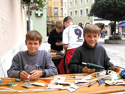 | Liebe Kinder und Eltern, wenn Ihr Kopien der nachfolgenden Fotos haben wollt, entweder das Foto selber speichern oder mit der rechten Maustaste auf dem Foto klicken und den Namen merken, z.B. sb06-reichenhallxxx.jpg und mir diesen Bildnamen an Hermann@solarbasteln.de senden senden. Ich sende Euch dann das Foto in voller Auflösung zu. | |||||||